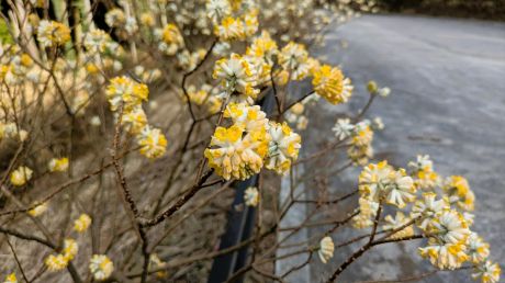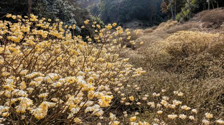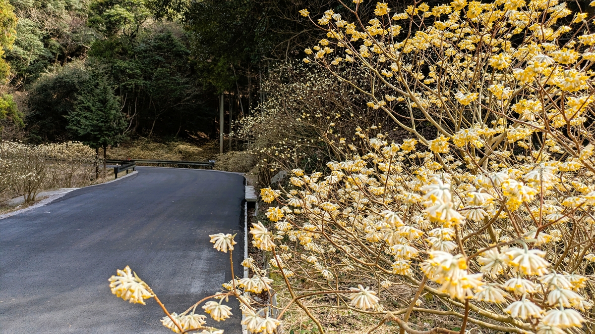 そんな希少価値の高いミツマタが竹田津港からお車で約10分ほどの山間部にある国見町西方寺地区に群生していて、わざわざ遠方から訪れる方もいるほど、数年前からかなり人気のスポットになっているんですよ (*^^*)