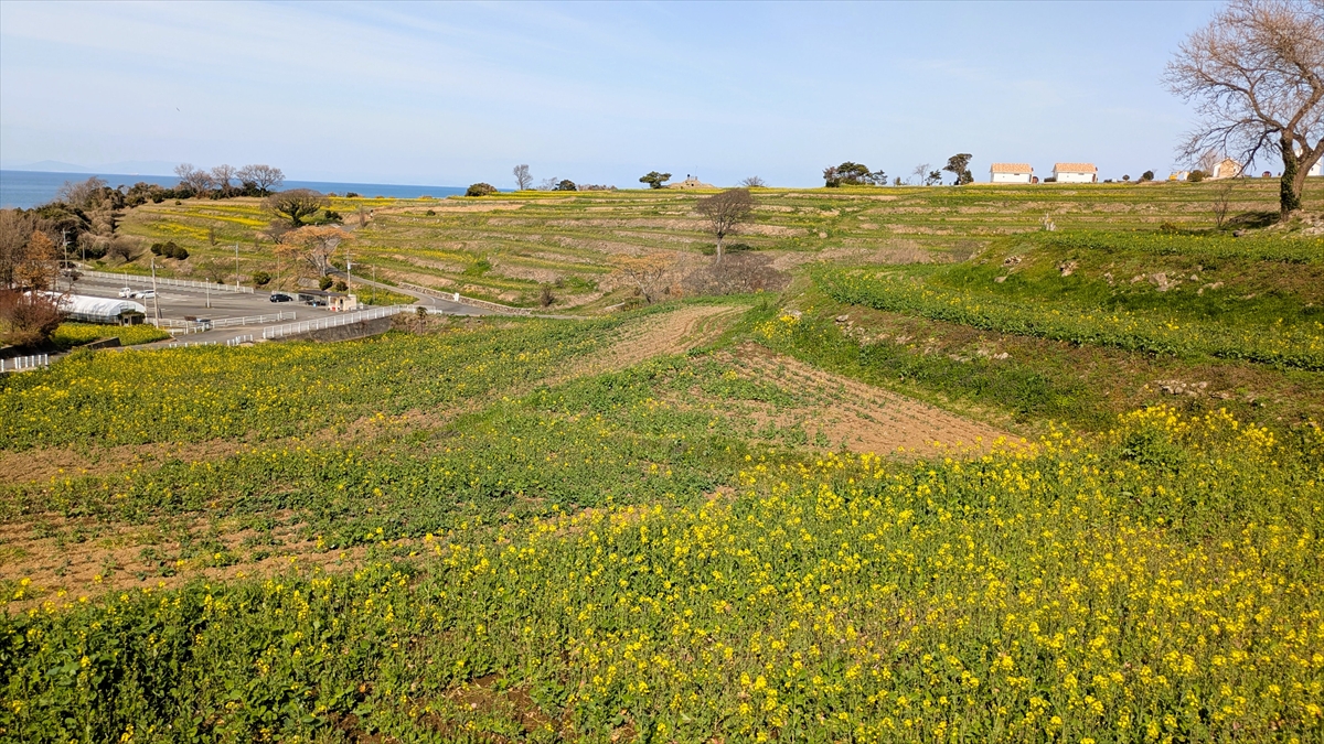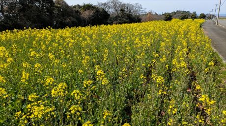 畑一面は菜の花の甘〜い香りに包まれていて、海からの風が優しく香りを運んでくれます♪