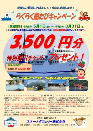 皆様のご要望にお応えして、今年も【らくらく船たびキャンペーン】を実施致します!!