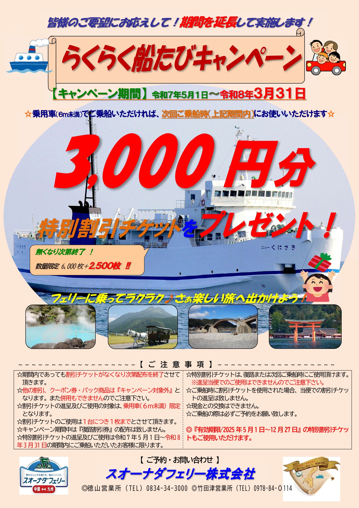 ○特別割引チケットの進呈及びご使用は、令和7年5月1日〜令和8年3月31日 の期間中にご乗船頂いたお客様に限ります。